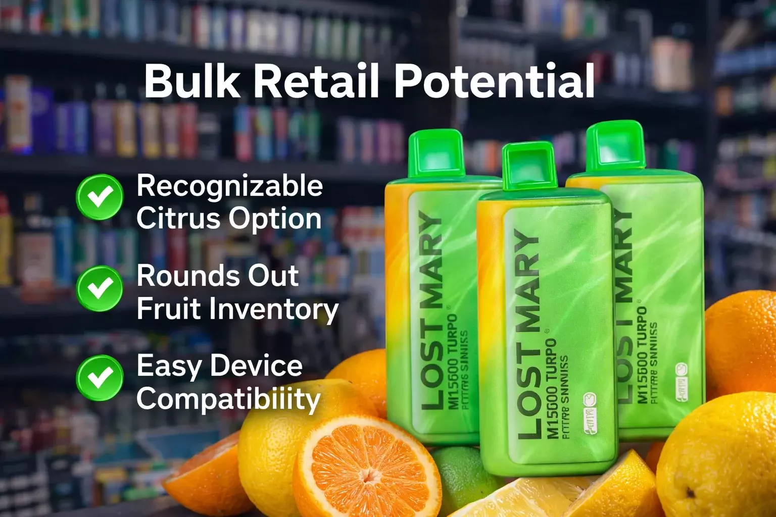 Retailers can source the Citrus Sunrise Lost Mary flavor through wholesale distributors that carry Lost Mary, supporting consistent inventory planning.