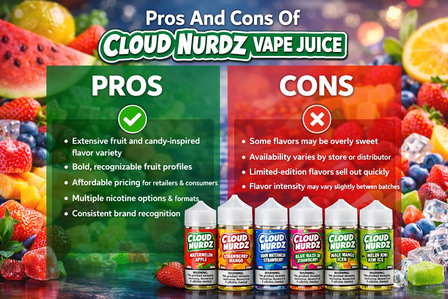 This section provides a brief, retail-focused overview of Cloud Nurdz vape juice, highlighting its versatility and why it remains a strong option for vape shop inventory.