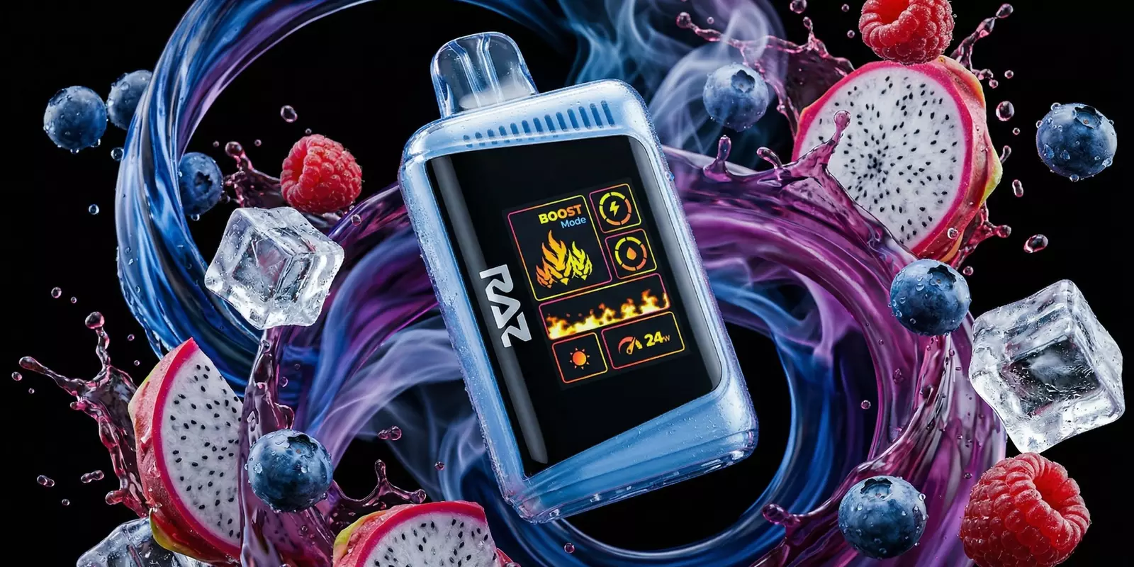 The Iced Blue Dragon RAZ flavor blends blueberry, raspberry, and dragon fruit with a crisp icy finish, giving it a fruit-forward profile that feels cool, bold, and slightly different from more common berry vapes.