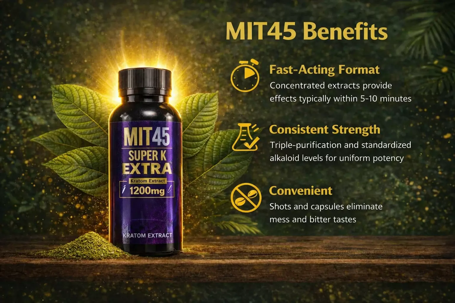 Taken together, these qualities make MIT45 a practical choice for buyers who want a strong, reliable kratom experience without the preparation that traditional powder formats typically require.