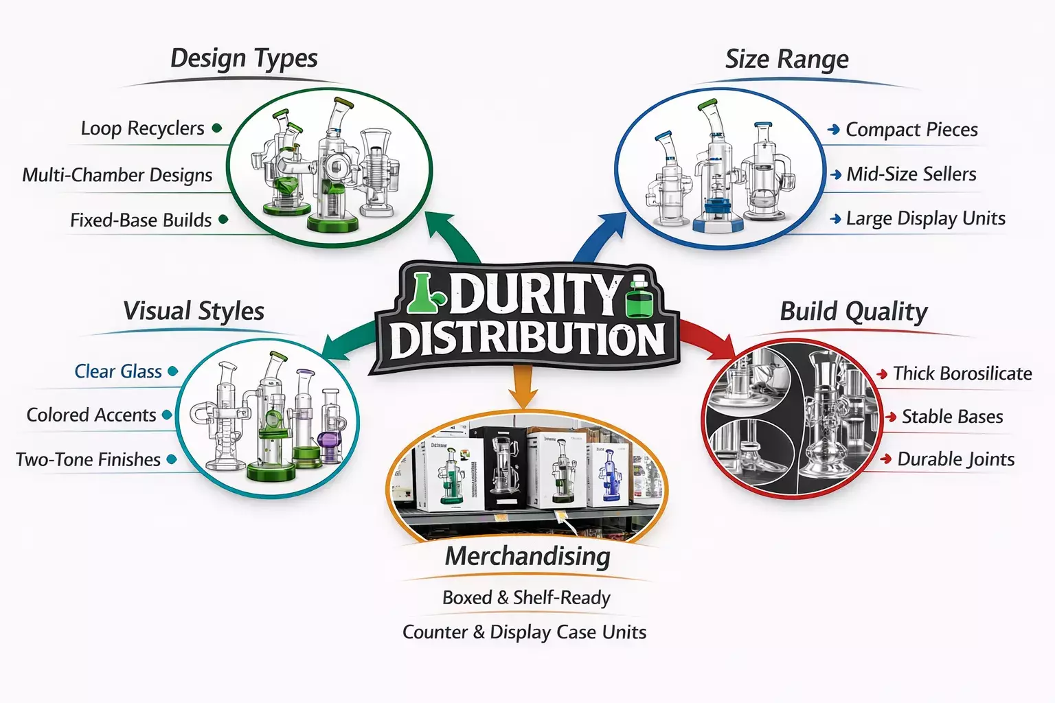 Durity Distribution is here to make bulk glass recycler buying simpler for retailers. Trusted by 118+ established brands, we work as a dependable network. Partner and remove friction from wholesale ordering so stores can stock confidently and scale faster.